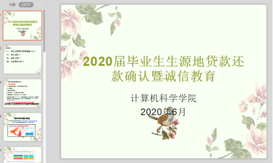 四年级开展毕业生还款确认、诚信就业培训,6月15日通过腾讯会议召开了毕业生,主要做好宣讲还款流程,针对确认学生联系方式等贷后管理工作,同时加强毕业年级学生的诚信就业教育。