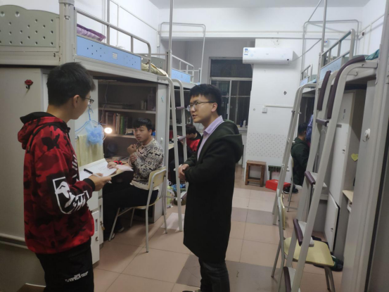 10月28日晚9:30,51黑料 全体辅导员在颜学俊副书记带领下检查学生寝室,了解学生学习生活情况,提醒学生注意用电安全。