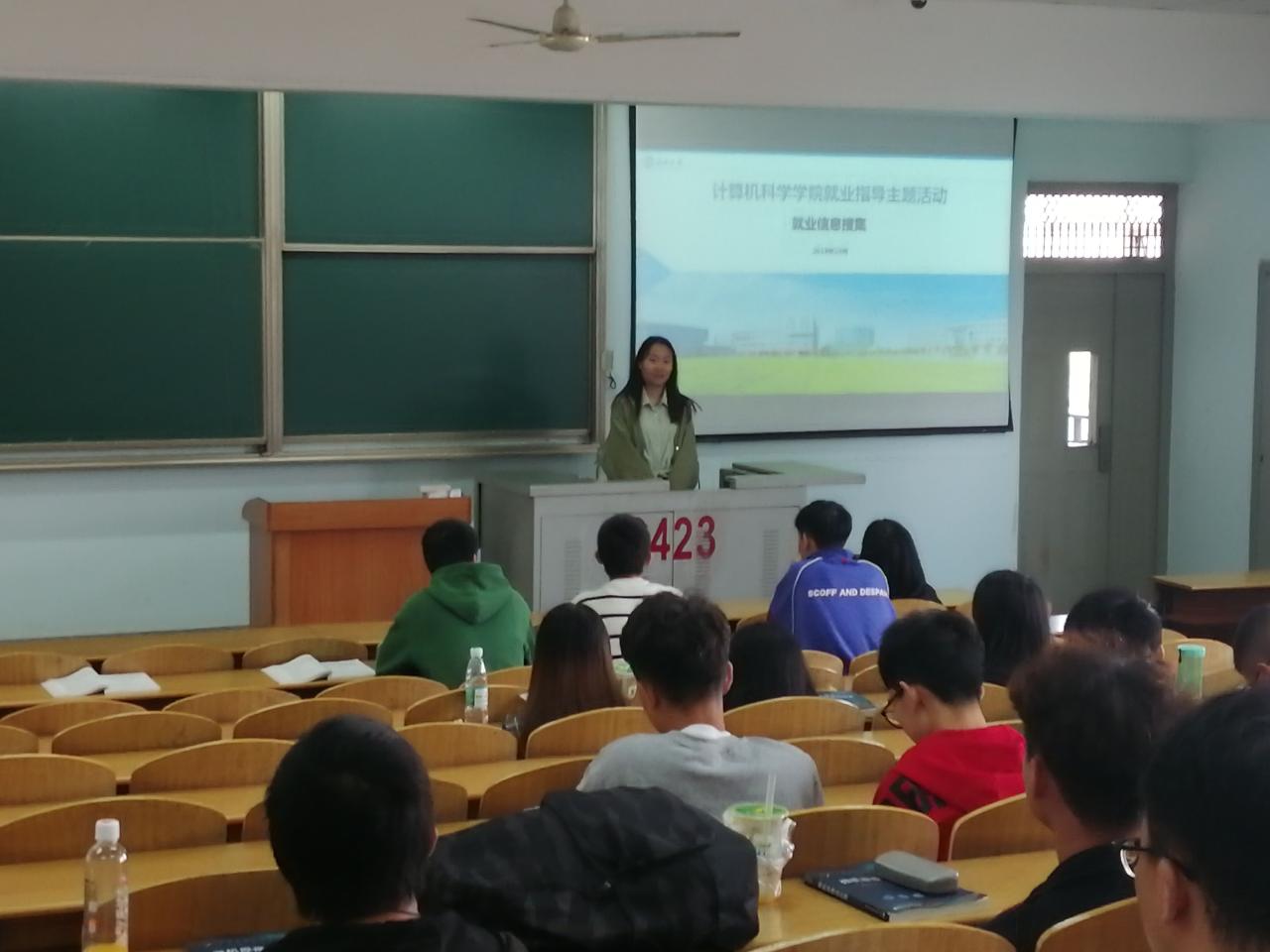 在软工11701班的分享会上,班级同学踊跃上台发言,畅谈对于未来实习、就业的看法。其中王圆同学从“搜集哪些就业信息”、“从哪里获取就业信息”、“获取就业信息的三种方法”以及“如何对搜集到的就业信息进行筛选”四个方面与班上同学进行分享。