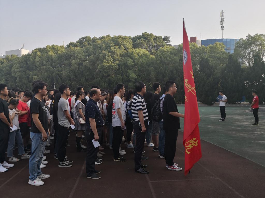 在西校区举行了庄严的升旗仪式,学院党委书记高明成、副书记向宇、18级辅导员老师及18级全体学生参加了升旗仪式。本次升旗仪式由18级李传奇同学主持。伴随着激昂雄壮的国歌声,鲜艳的五星红旗冉冉升起,迎风飘扬,全院师生肃立注目。