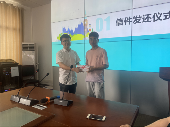 活动伊始,主持人介绍了本次活动的初衷。2019级原辅导员张颖旭老师以班级为单位逐一返还了2019级同学入学时写给自己的一封信信。紧接着,2019级学生代表林沐雨、张君豪分别发言。两位同学与全场同学分享了两年前写给自己的书信,总结了大学两年的学习生活及成长,全场成员以热烈的掌声为之点赞。