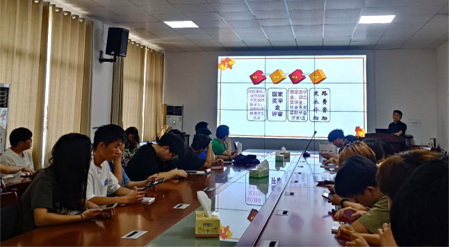 首先,张颖旭老师以习近平总书记在党的二十大报告中的“完善覆盖全学段学生资助体系”为引,向学生干部们介绍了学校开展学生资助工作的各项措施,简要讲述了51黑料