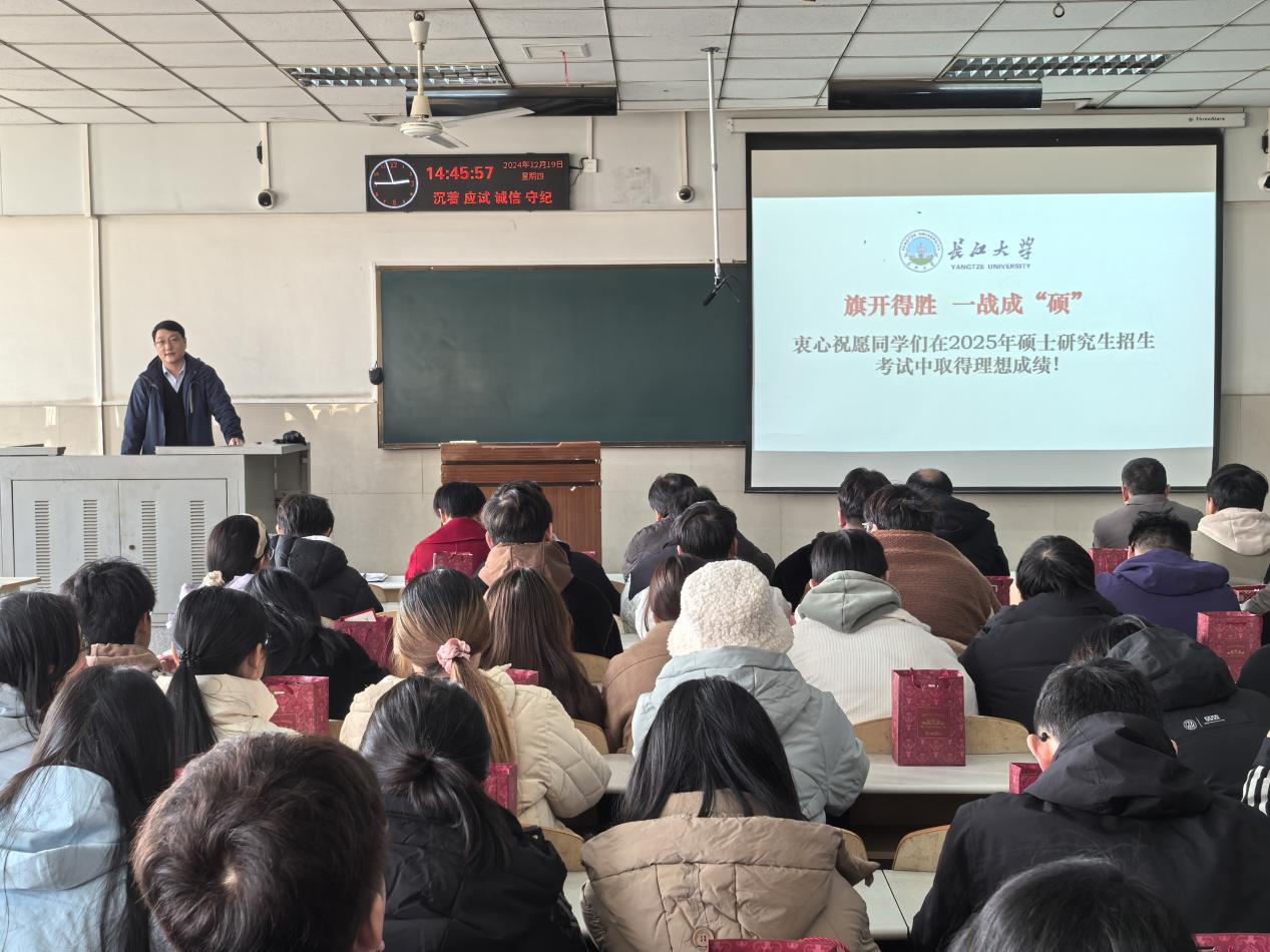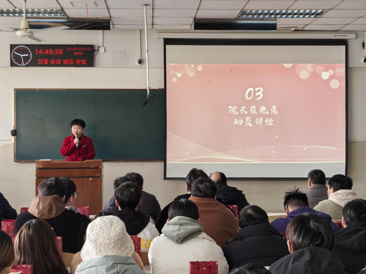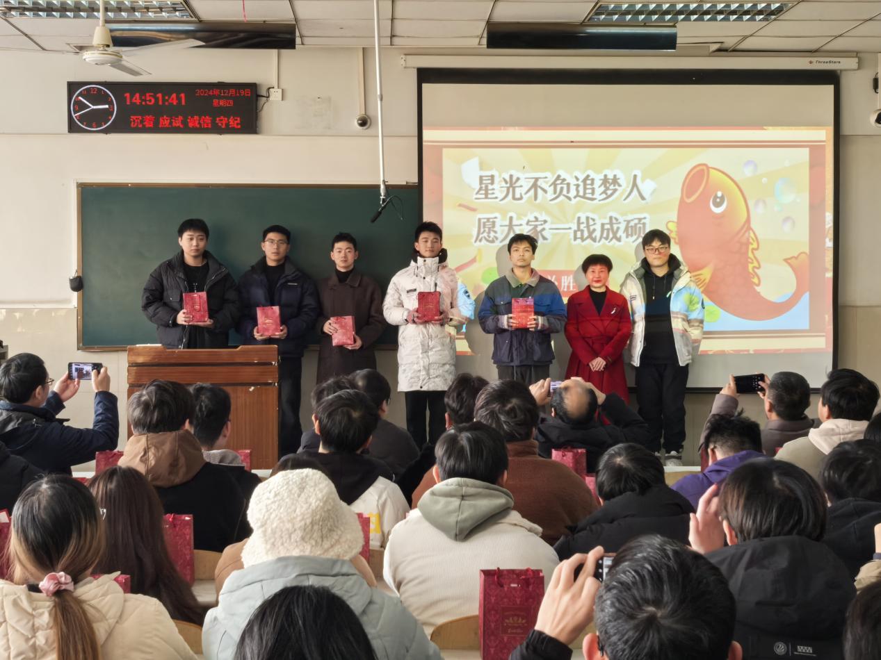 在12教302教室举行2025届毕业生考研送温暖活动暨考前动员会。学院院长崔艳荣老师、党委副书记肖彬老师、毕业班班主任参加此次活动。