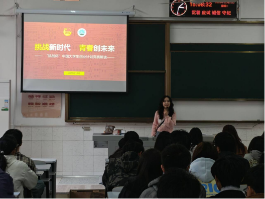 宣讲过程中,辅导员团队以“清晰认知+实例激励+实操指导”为核心逻辑展开分享。首先,针对学生对赛事的基础疑问,用通俗化语言系统介绍了“挑战杯”系列竞赛的核心定位、发展历程与赛事体系,重点厘清了“大挑”(课外学术科技作品竞赛)与“小挑”(创业计划竞赛)在竞赛方向、参赛要求、评审标准上的关键区别,帮助学生根据自身优势精准定位参赛方向。为增强赛事吸引力与学生参与信心,辅导员们集中展示了学校近年来在“挑战杯”系列竞赛中的亮眼战绩,通过列举获奖项目名称、团队构成、成果转化等具体案例,直观呈现了赛事对个人成长、学术提升与职业发展的重要价值,让学生真切感受到身边榜样的力量。针对2026年“小挑”校赛这一核心内容,辅导员们详细解读了竞赛主题、报名流程、作品要求、评审维度等关键信息,强调竞赛以“引导学生实事求是、刻苦钻研、勇于创新”为宗旨,不仅是展示学术科技成果的平台,更是培养实践能力、团队协作能力与创新思维的重要载体,鼓励学生结合专业特色与社会需求挖掘参赛选题。