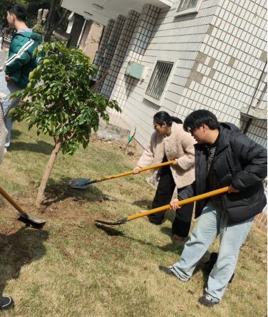 活动现场,大家热情高涨,干劲十足。同学们分工协作,扶苗、培土、踩实、浇水,每一个环节都一丝不苟。虽然双手沾满了泥土,额头上渗出了汗水,但看着挺立在春风中的小树苗,每个人的脸上都洋溢着喜悦的笑容。这棵新栽种的幸福树,不仅承载着班长们的集体心愿,更象征着计科学子如同这树苗一般,在知识的土壤中向下扎根、向上生长,追寻属于自己的幸福人生。