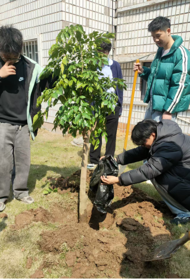 “希望这棵树能和我们一起成长,等我们毕业十年、二十年回来时,它依然枝繁叶茂,成为我们回忆青春的坐标。”计科12302班班长乔有航在活动中动情地说道。活动特别设置了“时光寄语”环节,同学们将写有班级愿景和未来期许的卡片挂在树梢,与幸福树定下“十年之约”。辅导员郭帅表示:“我们种下的不仅是一棵树,更是一个‘幸福坐标’。希望同学们能像这棵树一样,耐得住寂寞,经得起风雨,在未来的人生道路上收获属于自己的幸福,无论走到哪里,这里永远是大家的精神家园。”