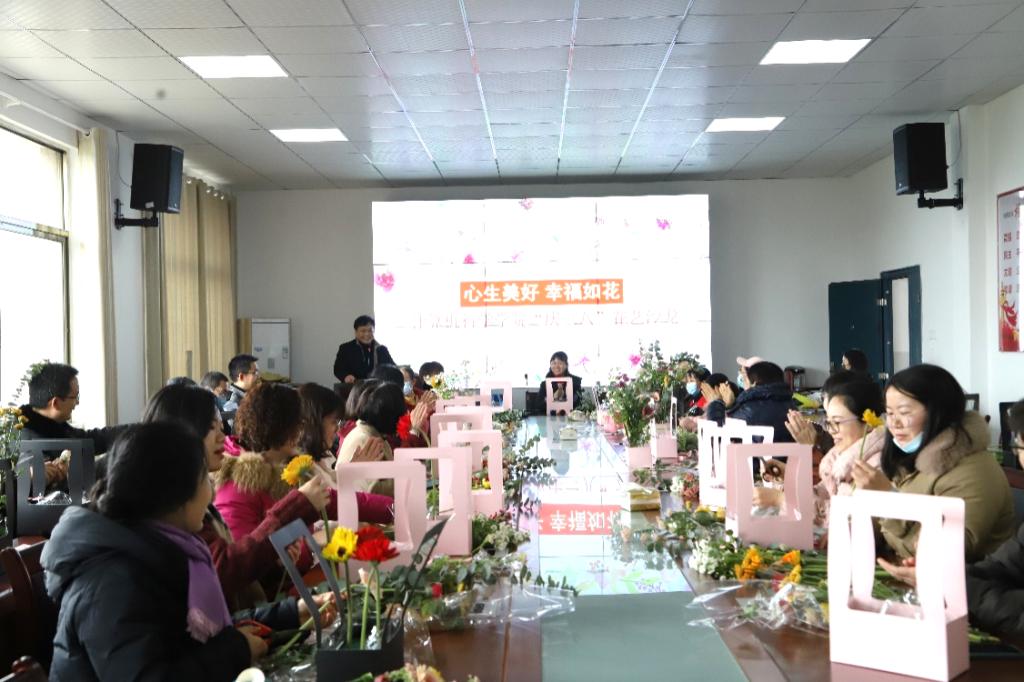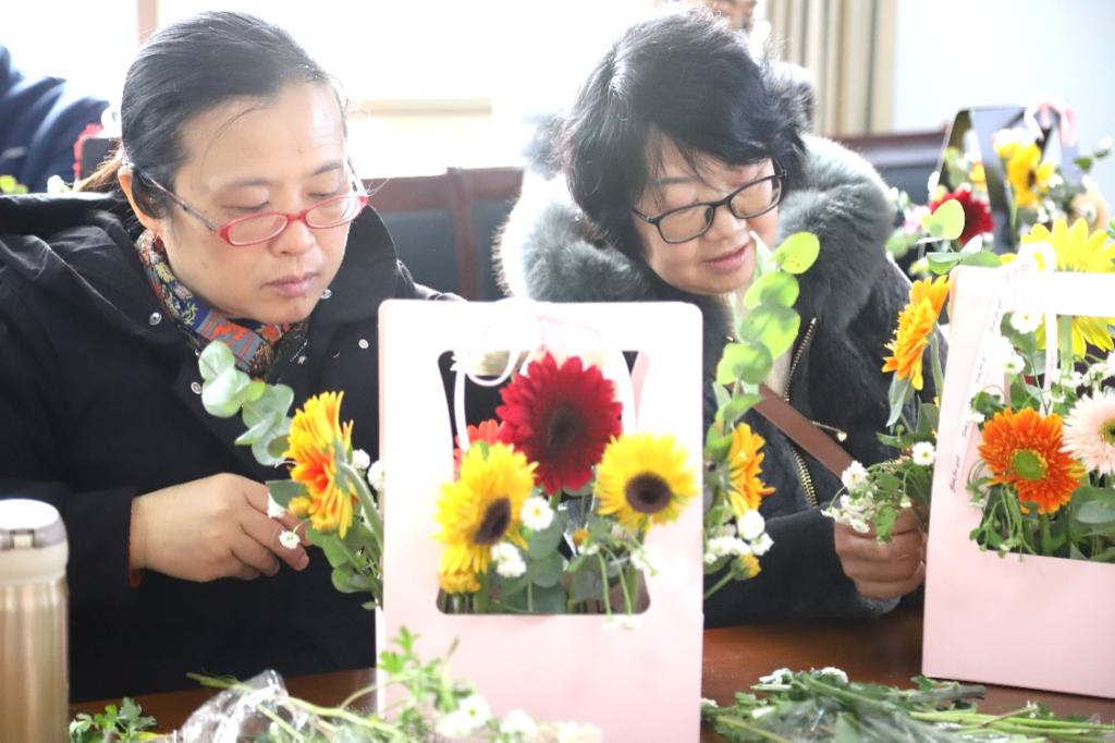 活动伊始,花艺老师详细介绍了插花艺术的基本知识、常见花种、插花的基本花型及技巧等内容,给女教工们普及了理论知识。