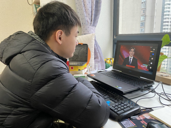 全体学生在班主任老师的带领下以班级为单位齐聚腾讯会议平台在线收看直播,因课程冲突未能参加直播学习的学生班级在课后通过视频回看的方式组织学习,做到本科生、研究生百分百全覆盖。