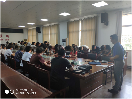 在5教501会议室举行2019级研究生拜师会。学院副院长宋文广、学院党委副书记颜学俊、学工办主任付盈、教学办主任方慧、硕士生导师及2019级全体研究生参加会议。