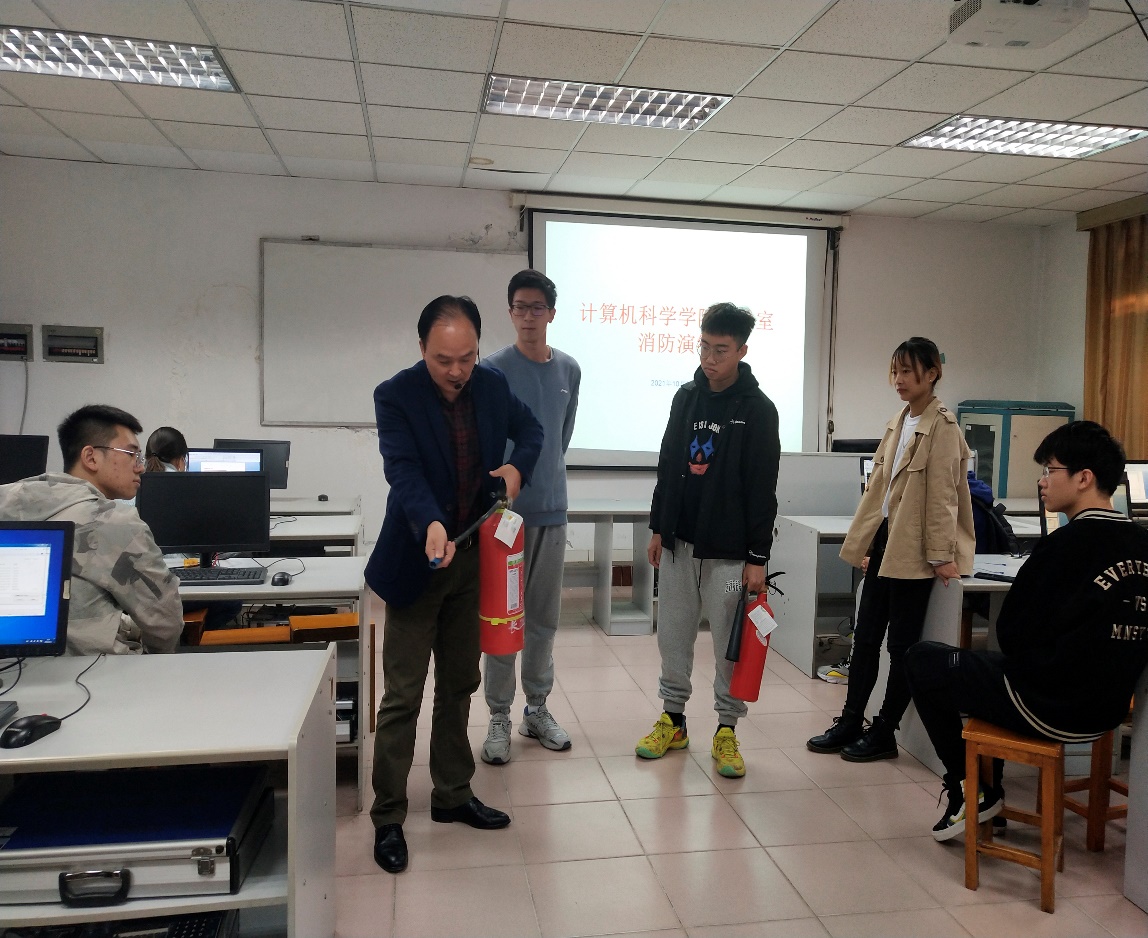 组织实验室老师和学生代表在4教213计算机硬件基础实验室进行了实验室安全应急模拟演练。活动由学院行政副院长向宇主持。向院长通过真实案例向大家介绍了实验室安全的重要性和实验室发生险情后的逃生技能,并和学生互动演示了灭火器的使用方法。