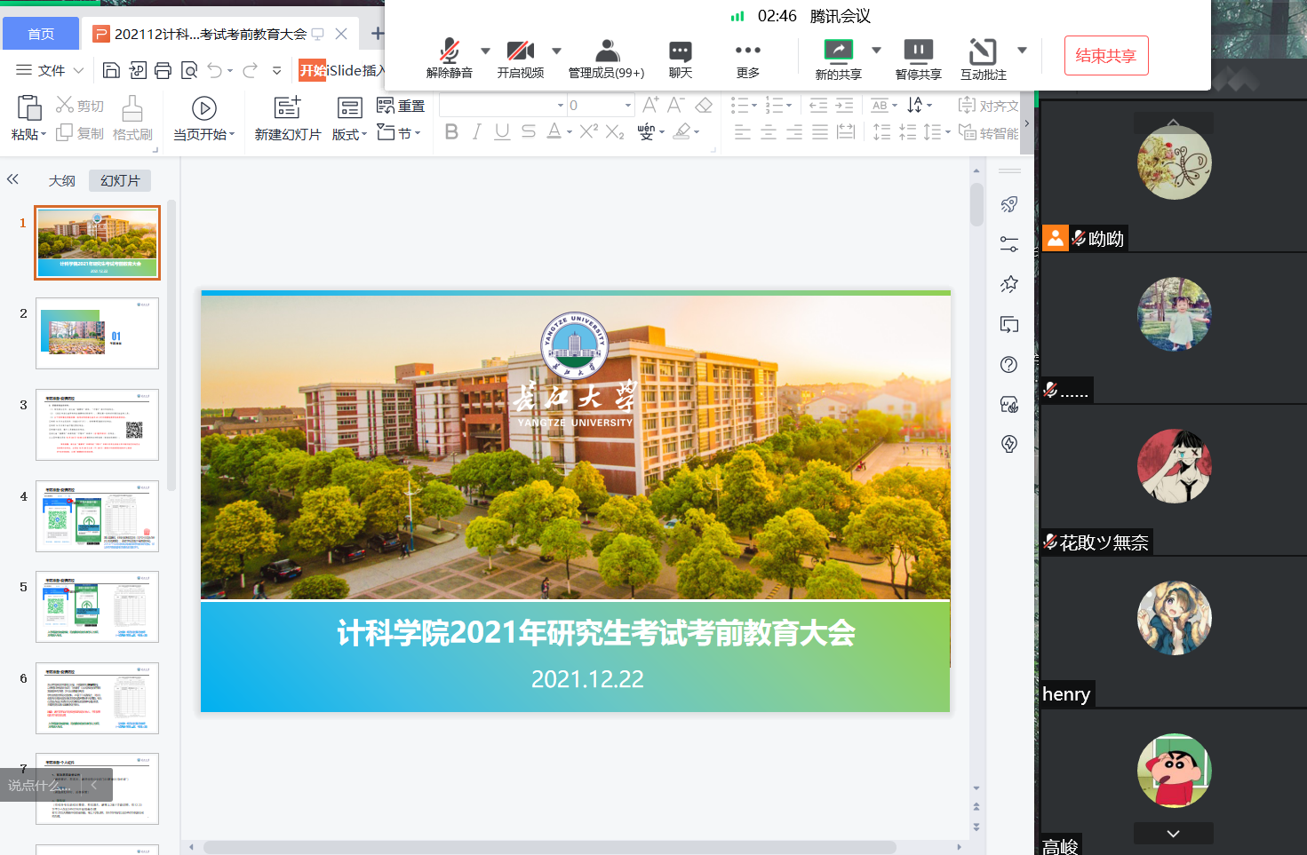 会议开始,颜书记叮嘱大家要注意防寒保暖,建议好好休息“轻装上阵”,分享了舒缓减压的小方法。并再次强调了考风考纪,希望大家从长远出发,对自己的未来负责人。