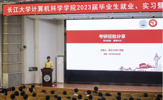 2022年5月26日,学院在12教405报告厅召开了2019级本科生考研动员大会。学院党委副书记颜学俊、副院长詹炜、副院长宋文广,辅导员张茜、余珺瑞,2018级考研代表以及2019级全体学生参加了本次会议,会议由学院党委副书记主持。