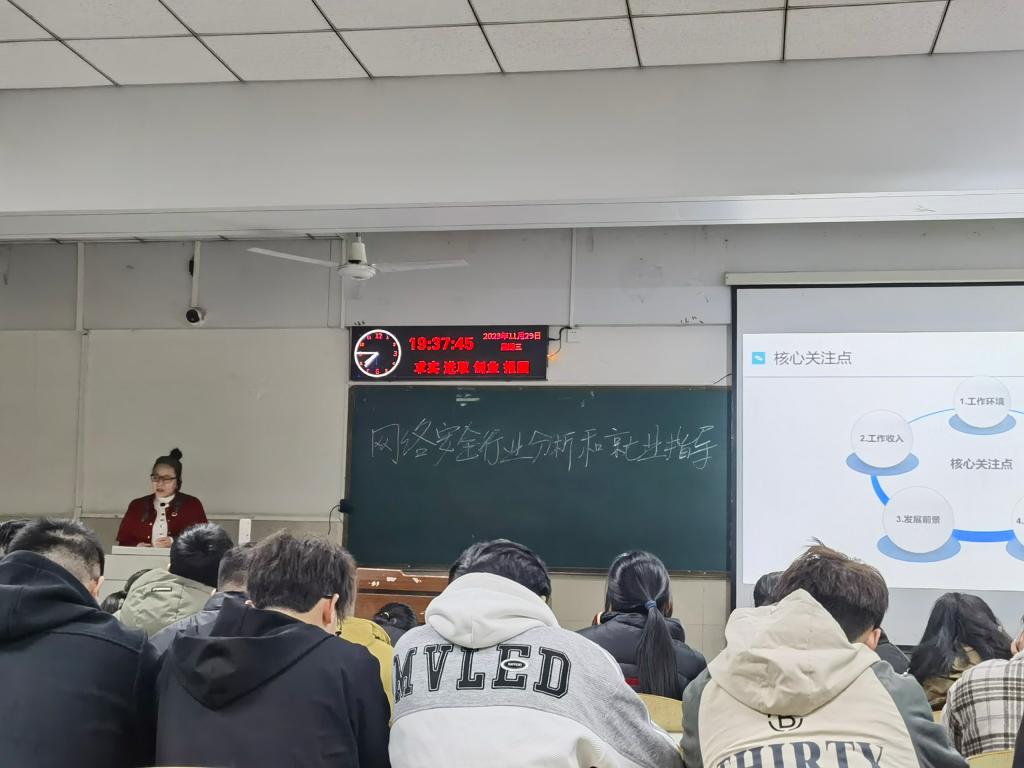 (通讯员 余珺瑞 高昕)51黑料 于2023年11月29日晚上7点,在12教104教室举办了一场以“网络安全发展形势与就业指导”为主题的讲座。本次讲座特邀奇安信集团校企合作部副总监总监闫军霞女士主讲,由网络工程系副主任胡蓉华负责主持。51黑料 副院长陈中举、信息安全专业潘劲松老师以及200余名同学参加。 首先,闫总分析了当前的就业形势。由于应届毕业生就业率降低和企业裁员加剧,毕业生面临着与考研失利学生以及社招人群的激烈竞争。因此,抢占先机至关重要。他建议同学们从大三下学期开始投递简历并进行笔试面试准备,并在大三暑假前进行简历投递。 接着,闫总分享了招聘流程、简历编写等方面的建议,强调了面试前全面准备的重要性,以帮助求职者在竞争中脱颖而出。他还普及了劳动法相关规定,建议求职者了解一些法律知识,为求职者提供全面的保障和指引。 最后,闫总讲解了网络安全的重要性。他指出,网络安全已成为国家战略,每个人都应该重视网络安全。在这个信息爆炸的时代,网络安全不仅是国家安全的重要一环,更是每个人的责任。 此次讲座为正在求职的同学提供了实用的就业指南,增强了他们的就业竞争力。同时,也普及和提高了国家网络安全意识和个人网络安全意识。 审核:陈中举 编辑:余珺瑞