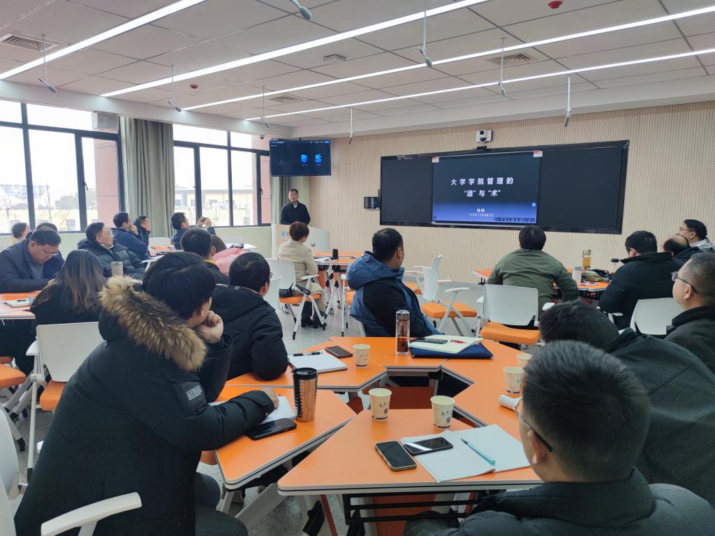 “要时刻保持思想破冰、以变应变,主动作为、组织变革的自我革命精神”,学校办公室副主任陆峰从“校长眼中的学院”出发,交流了大学学院管理中治理体系之“道”和治理能力之“术”。
