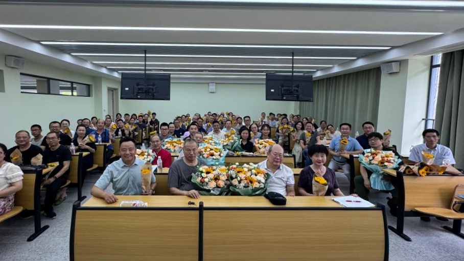 在16号教学楼A202室隆重召开了新学期首次教职工大会。本次会议由党委书记郑健主持,旨在庆祝教职工的荣休,表彰杰出教师,并为即将到来的教师节增添节日氛围。