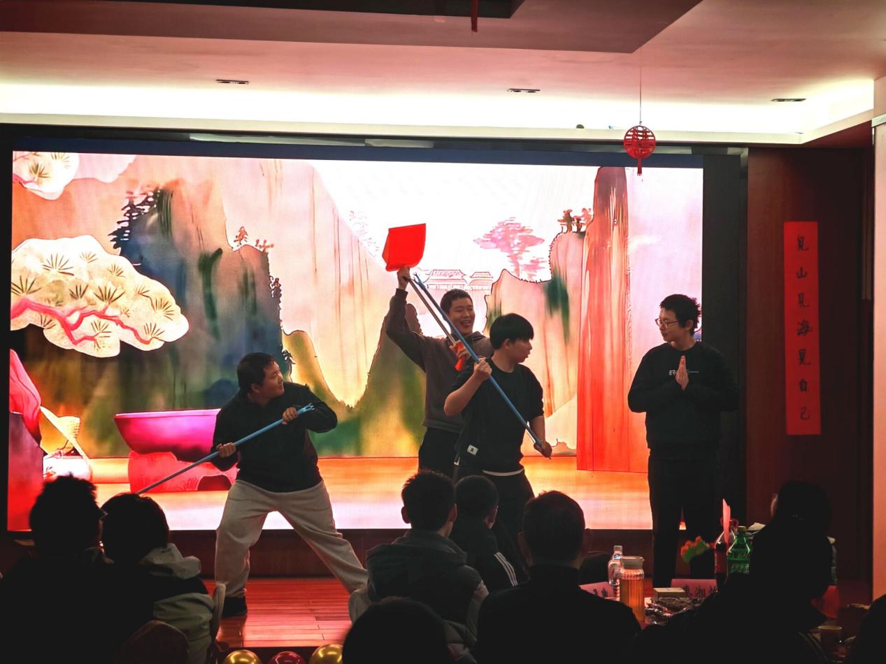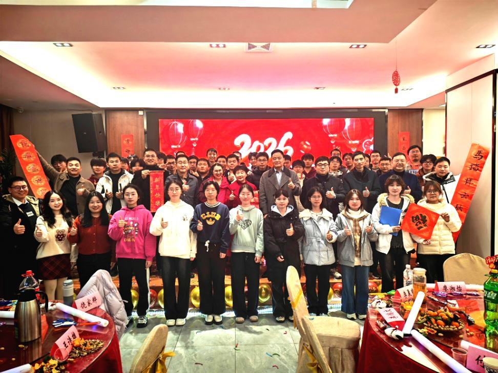 晚会伊始,全体同学2025年珍贵照片凝聚的温情视频率先登场。视频里定格了同学们并肩学习、携手活动的难忘瞬间,不仅系统回顾了过去一年的成长点滴,更饱含着大家对2026年学业精进、不负学院期许的坚定展望,温情氛围感染全场。随后,多元新颖的舞台节目轮番上演,亮点纷呈:女生舞蹈《失恋阵线联盟》活力四射,轻快舞步瞬间点燃全场热情;辅导员合唱《一路生花》温柔治愈,歌声里满含师长对学子的殷切期许;相声《我的传奇爷爷》包袱密集,逗趣表演让现场笑声不断;歌曲《老男孩》《十年》旋律婉转,深情诉说着青春感悟与时光感慨;舞台剧《八十一难》《学生的名义》创意十足、诙谐生动,分别以经典改编与校园实景演绎引发全场共鸣;合唱《平凡之路》《恭喜发财》则各具特色,前者唱响青春的迷茫与坚定,后者洋溢着浓浓的新年喜气。