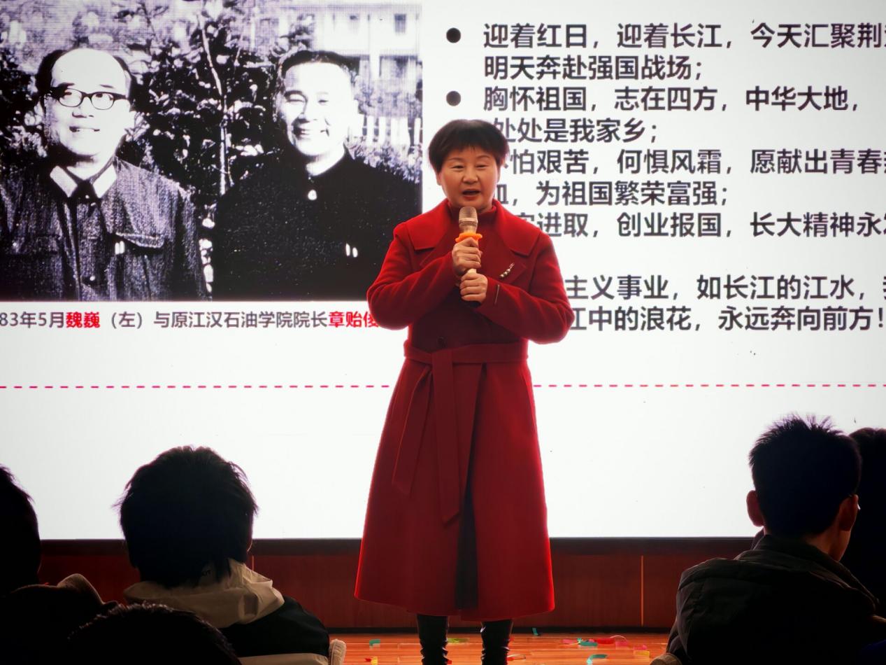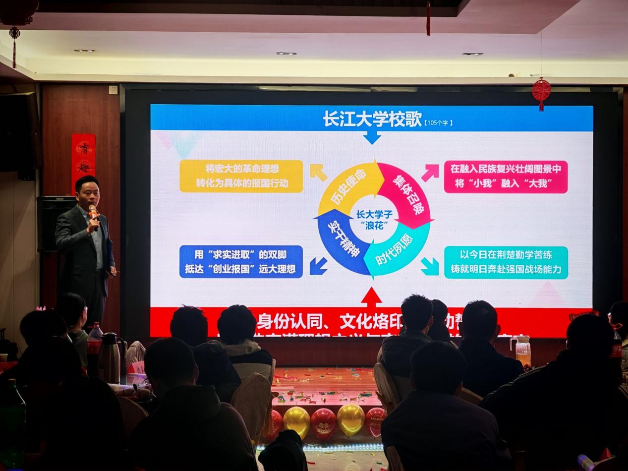 党委书记郑健带来的诗朗诵《长大人的歌》尤为震撼,字字铿锵有力,深情诉说着长大人的使命与荣光,瞬间将晚会氛围推向高潮,引发全场师生强烈共鸣。