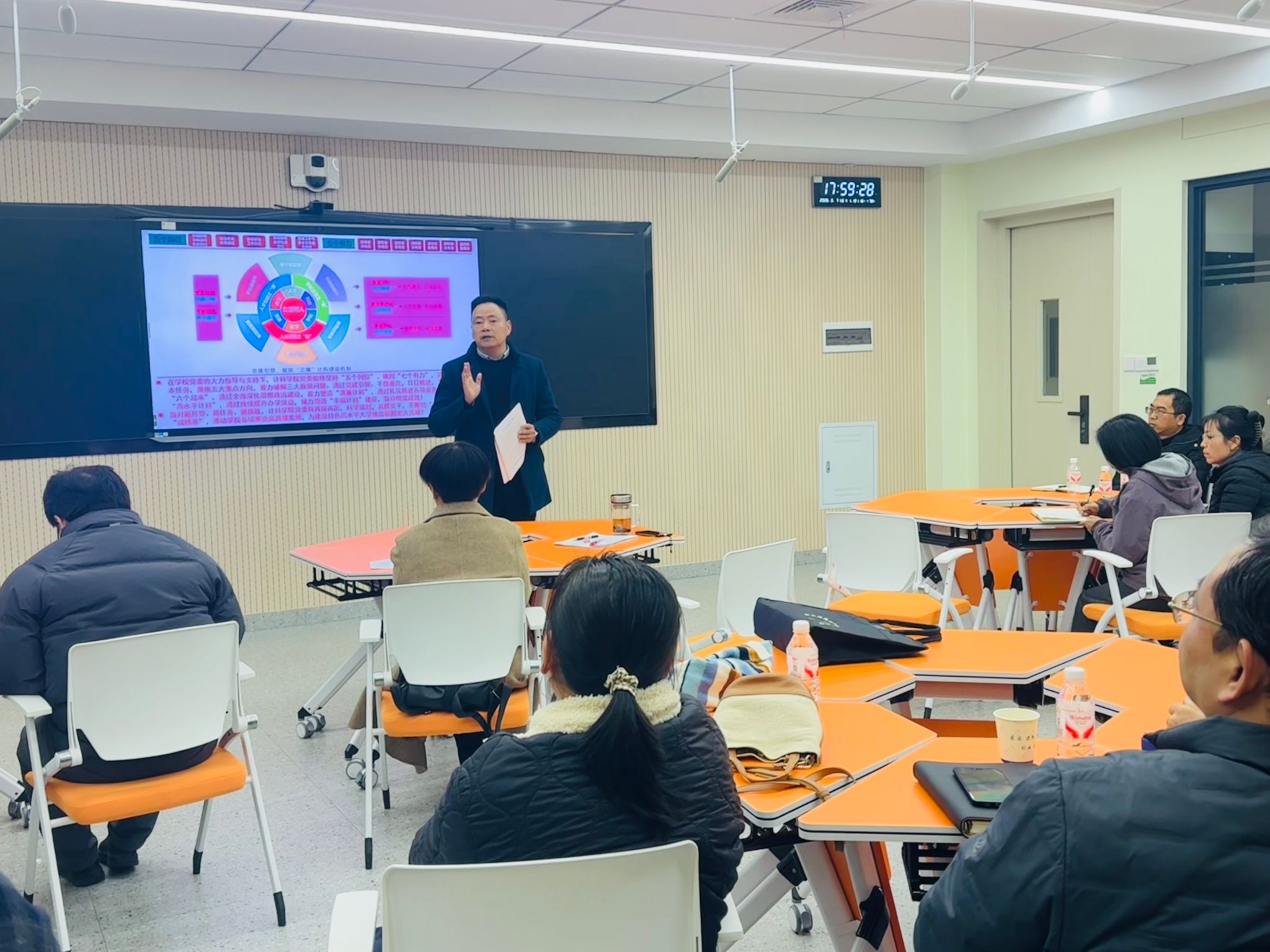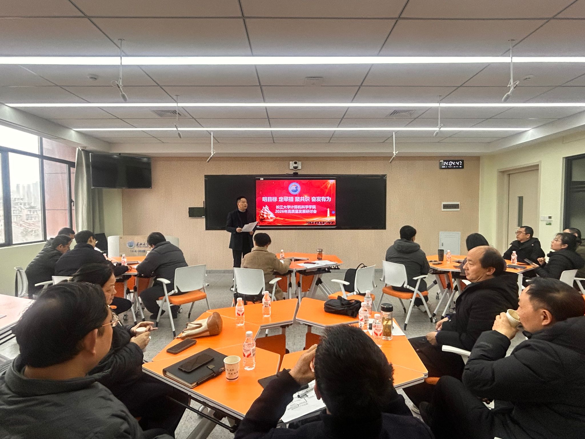 2026年工作要点》,聚焦学院发展中心任务,坚持党建引领“五个到位”,做到“七个有力”,紧扣立德树人根本任务,聚焦五个重点方向,破解三大难题,狠抓“六个起来”,从“清廉计科、高水平计科、幸福计科”三个维度推进学院建设,提升办学效能。在此基础上,他强调,党员队伍和干部队伍是学院发展的核心力量,要充分发挥党建引领作用,推动干部率先垂范,以问题导向和目标导向扎实推进人才引进、学科建设和人才培养等重点工作。