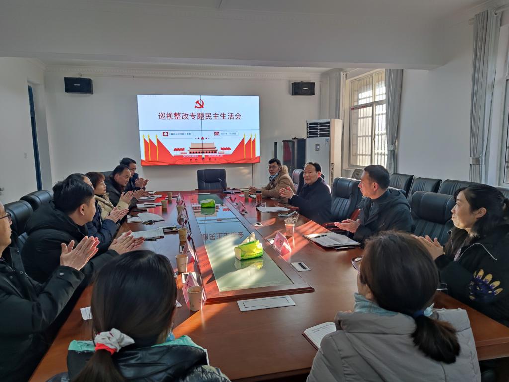 召开了省委巡视整改专题民主生活会。督导组组长周思柱副校长、督导组成员彭飞书记、督导组联络员信晓阳科长到会指导。学院处级党员领导干部黄群俊、向宇、詹炜、宋文广、颜学俊参加了会议,组织员郭麦成因居家隔离提交书面检查材料,院长崔艳荣、内设科室主要负责人熊晶、冯翠丽、付盈、苏玉容、周双列席会议。