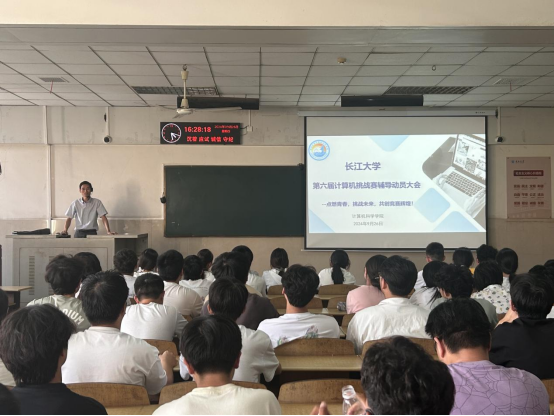 第六届计算机能力挑战赛辅导动员大会(以下简称计挑赛),本次会议由2023级辅导员郭帅主持,教学副院长陈中举老师及全校计挑赛参赛学生参会。