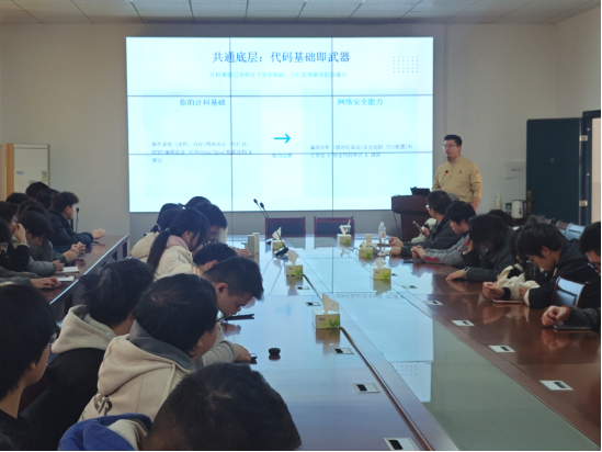于5教501会议室举办优秀校友经验分享会。2011级校友雷向强重返母校,为学院学子带来主题分享,助力大家洞察行业脉络、明晰成长与职业规划路径。